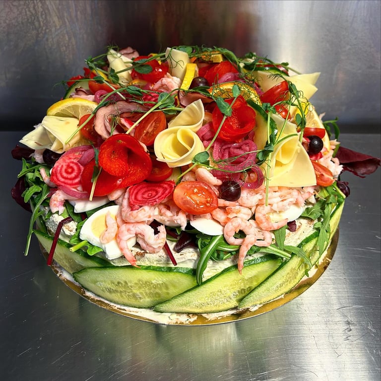Du kan också beställa lyxig smörgåstårta från oss! Välj mellan
